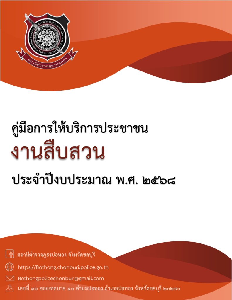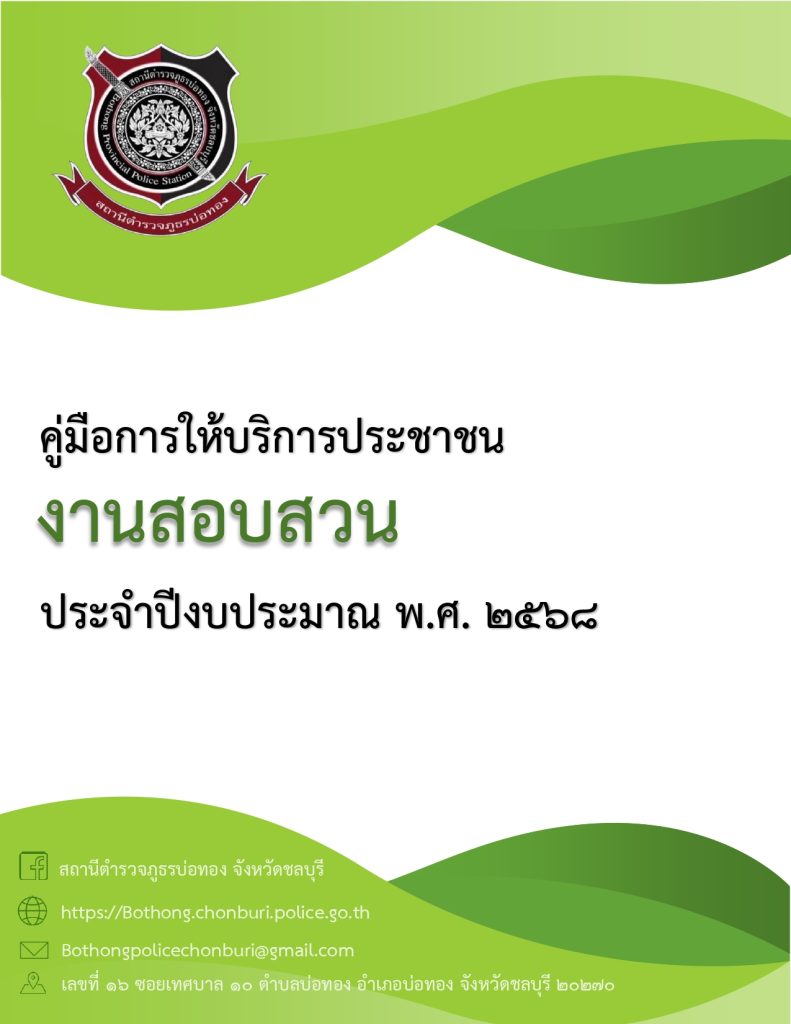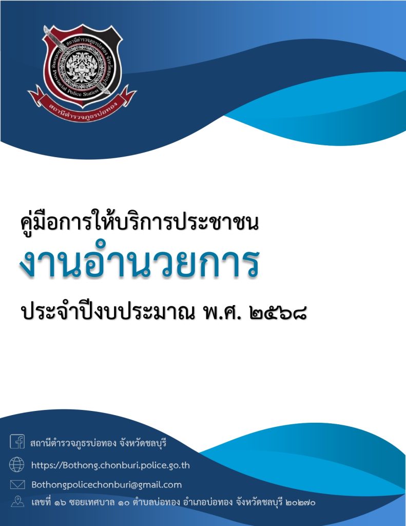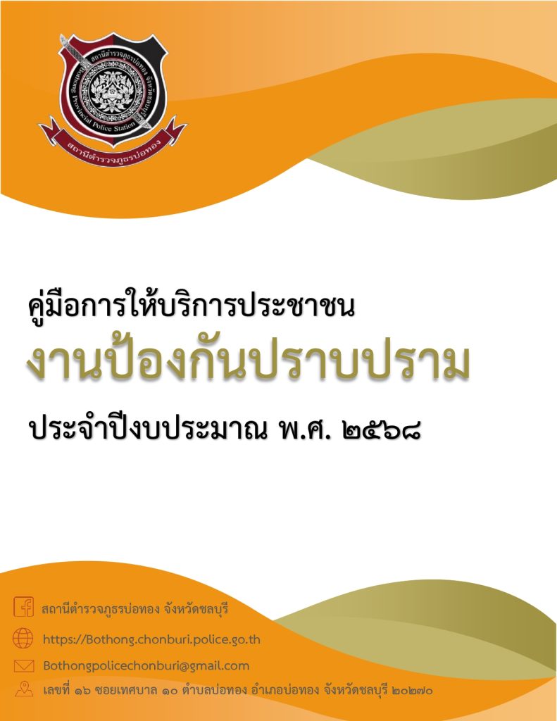 คู่มือฉบับประชาชน สภ.บ่อทอง คู่มือฉบับประชาชน สำนักงานตำรวจแห่งชาติ Facebook iconFacebookTwitter iconTwitterLINE iconLine